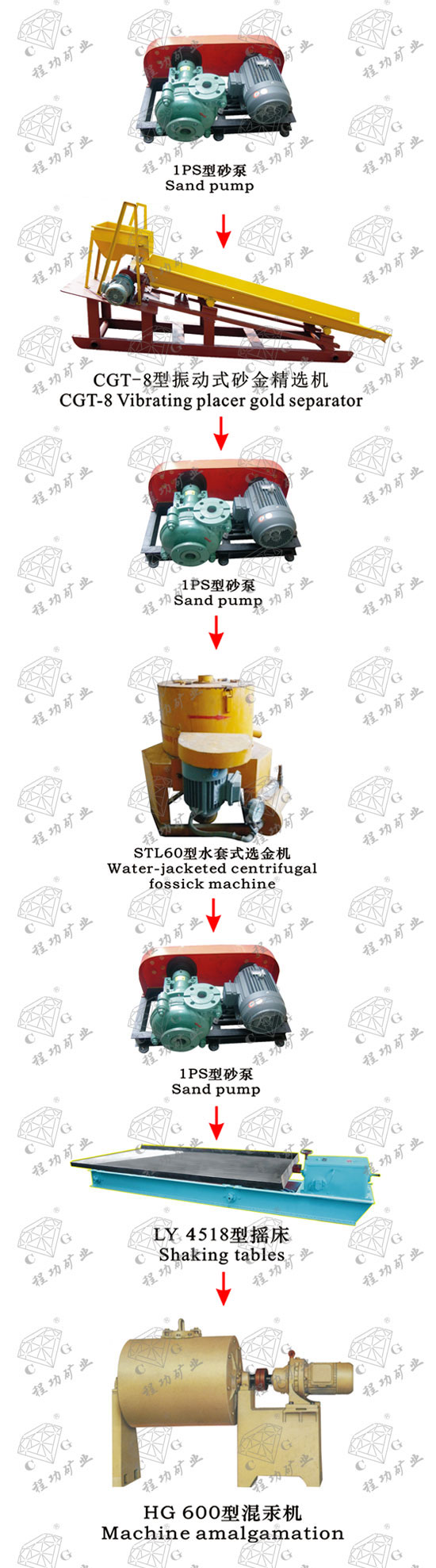 日处理100 t/d砂金选矿工艺设备流程图 Placer gold equipment with the capcity of 100t/d for extraction and technics flow chart