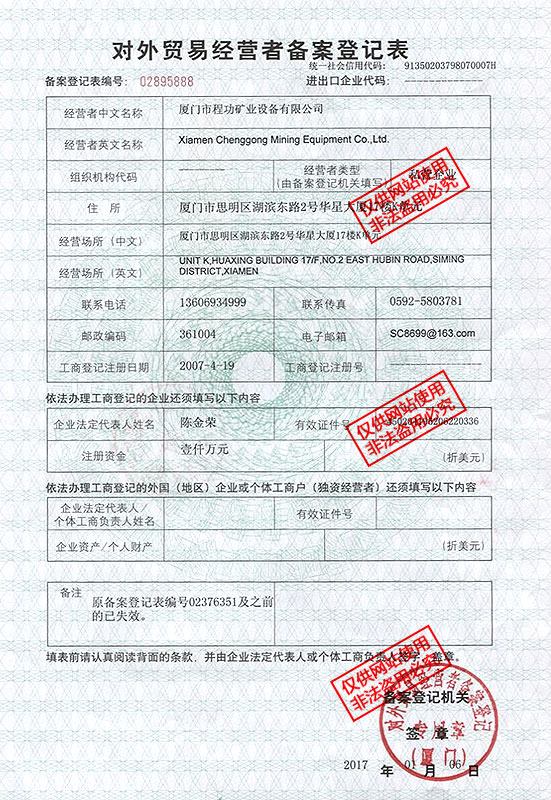 Xiamen Cheng Gong mining equipment co., LTD. Is the sales for the integration of technology companies, mainly engaged in gold mine, metal mine, metallurgy, cement, coal, environmental protection, chemical industry, highway, railway, etc the technology research and development and production of complete sets of equipment manufacturing. Products involving shovel, feeding, conveying, crushing, grinding, sieving, magnetic separation, gravity separation, flotation, mineral purified, dehydration and other complete sets of equipment. Shi Liaochang of the construction of the highway, railway, construction, system sand factory complete sets of equipment, etc.